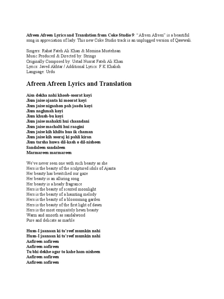 Afreen Afreen Lyrics In Urdu Written Afreen Afreen Lyrics In Urdu Written - Please do so in the comments section below