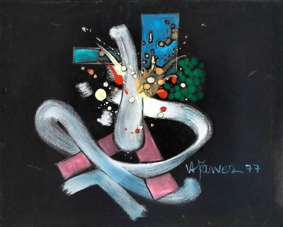 Ahmed Parvez Ki Drawing Ahmed Parvez Ki Drawing - View abstract composition with black birds and minaret at top with a crescent moon and star (1976) by ahmed parvez;