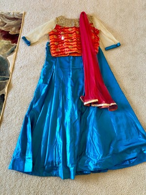 Bollywood Crop Top Lehenga Skirt : Blue crop top skirt fabric :