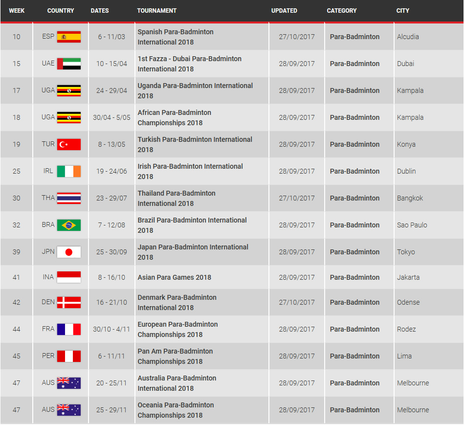Bwf Para Badminton Calendar 2021 Bwf Para Badminton Calendar 2021 : Halaman badminton di flashscore.co.id menawarkan hasil pertandingan badminton yang cepat dan akurat.