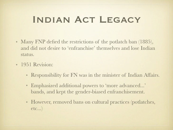 Indian Act 1951 : A history of oppression and resistance 1951 amendments