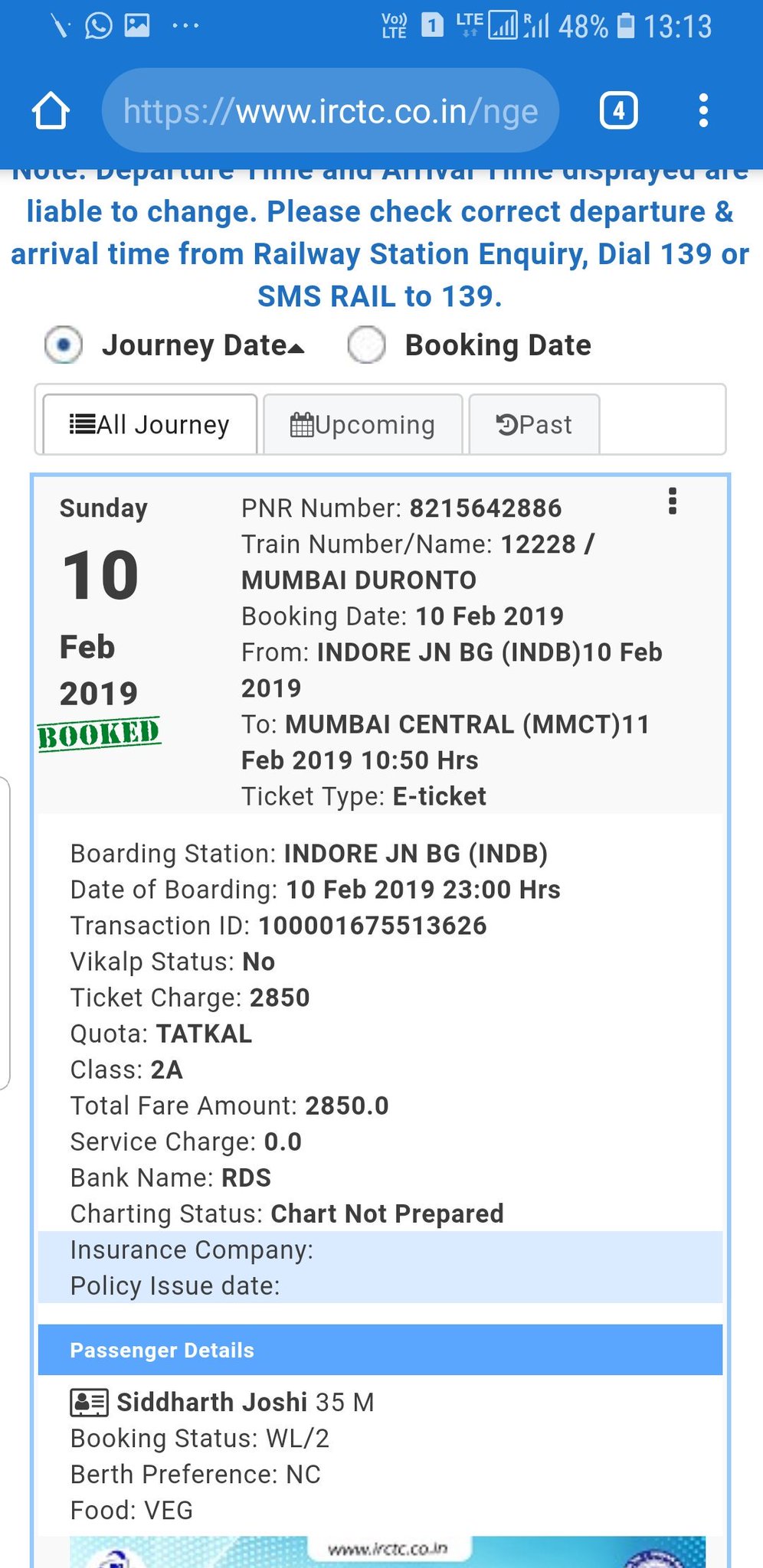 Zj13v7evboxhym - Hi,i`m booked train ticket for today 10th jan 2019 for train 12864 for sleeper.