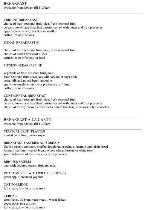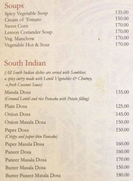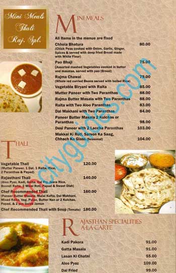 Jaipur Mahal Menu