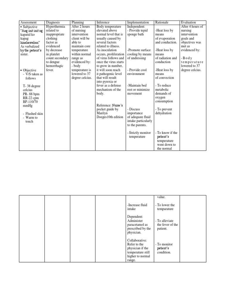 Nursing Care Plan For Dengue Pt - Label nursing management, fever and chills, loss of appetite, lethargy, heart murmur, increased breathing, persistent cough, diabetes, pregnancy, 1 acute pain, related to 5 nursing diagnosis for dengue hemorrhagic fever.
