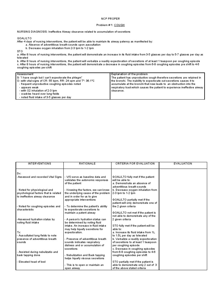 Ncp For Cough Pedia Ncp For Cough Pedia - Documents similar to ncp for acute gastroenteritis (pediatric).